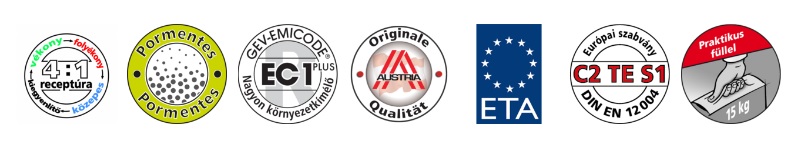 - univerzális: felhasználható vékony, közepes vagy folyékony ágyazóhabarcsként 10 mm rétegvastagságig