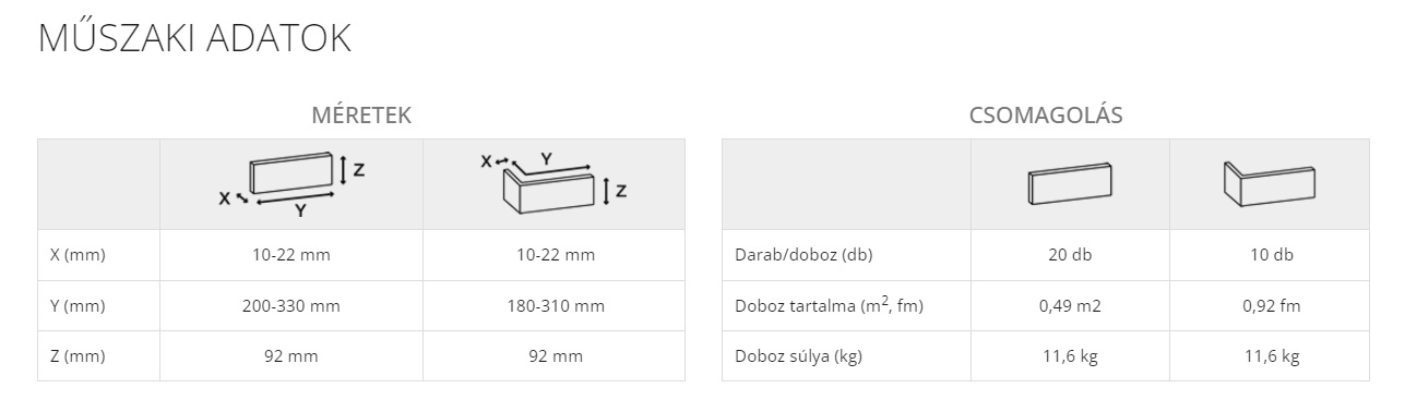 - Vastagság: 10-22 mm