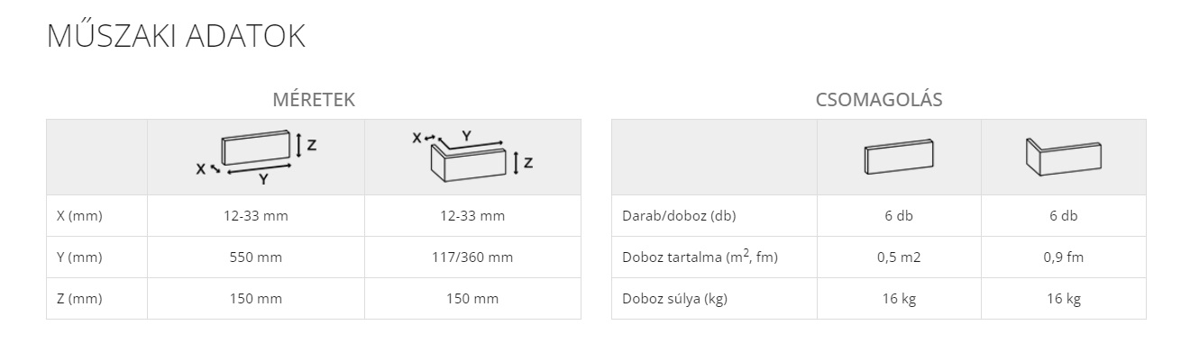 - Vastagság: 12-33 mm