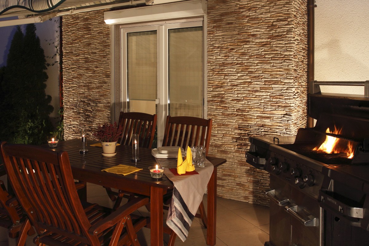 - Stílus: dekorburkolat, kőhatás