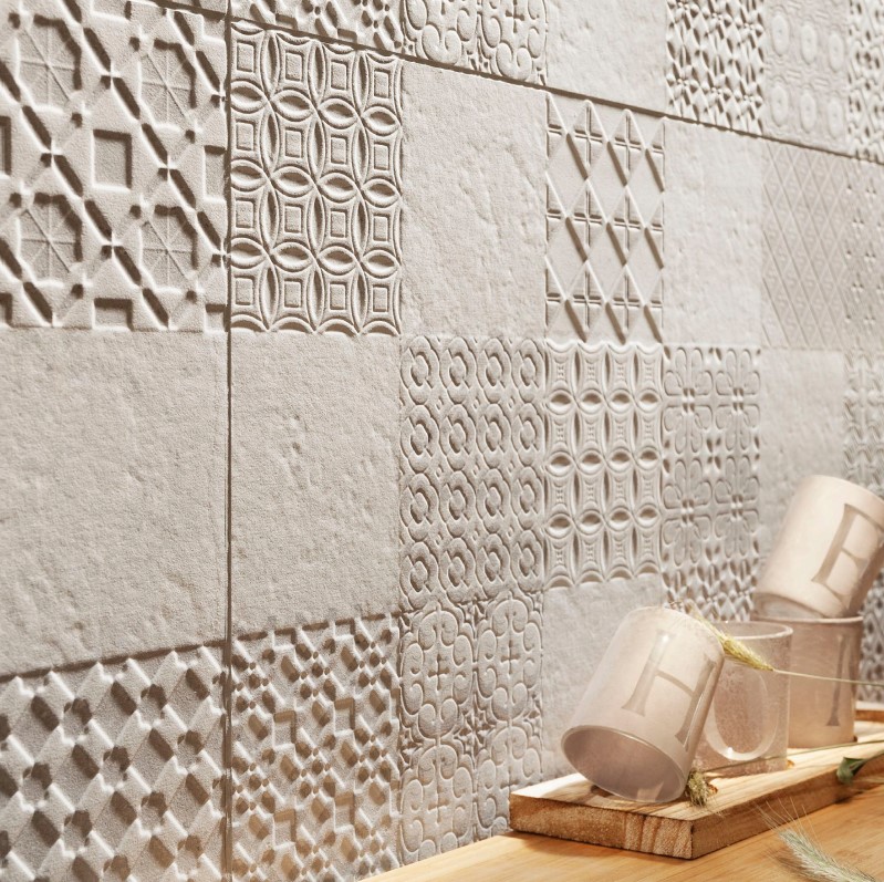 - Stílus: Letisztult betonhatású lapok egy kis maiolika mintával megfűszerezve