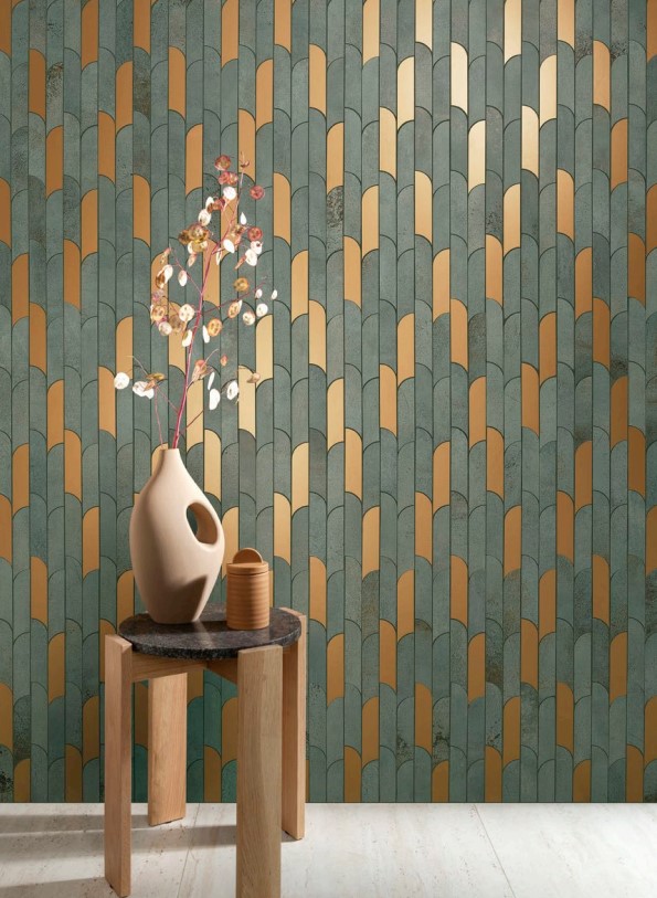 - Stílus: Matt mészkőhatás, zöld-arany dekorral