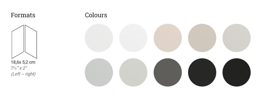 10 színben választható: White, White matt. Cream, Greige, Light grey, Sky blue, Mint, Dark grey, Black, Black matt