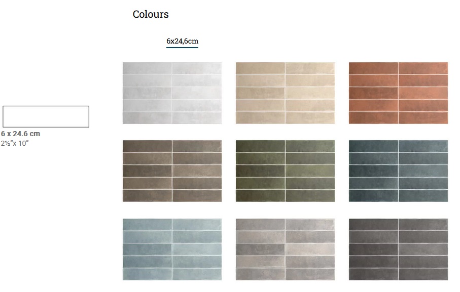 Cikkszám: Equipe Argile 6x24,6 padlólap és fali csempe, 9 színben választható