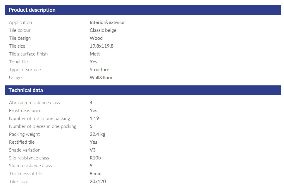 - Méret: 19,8x119,8