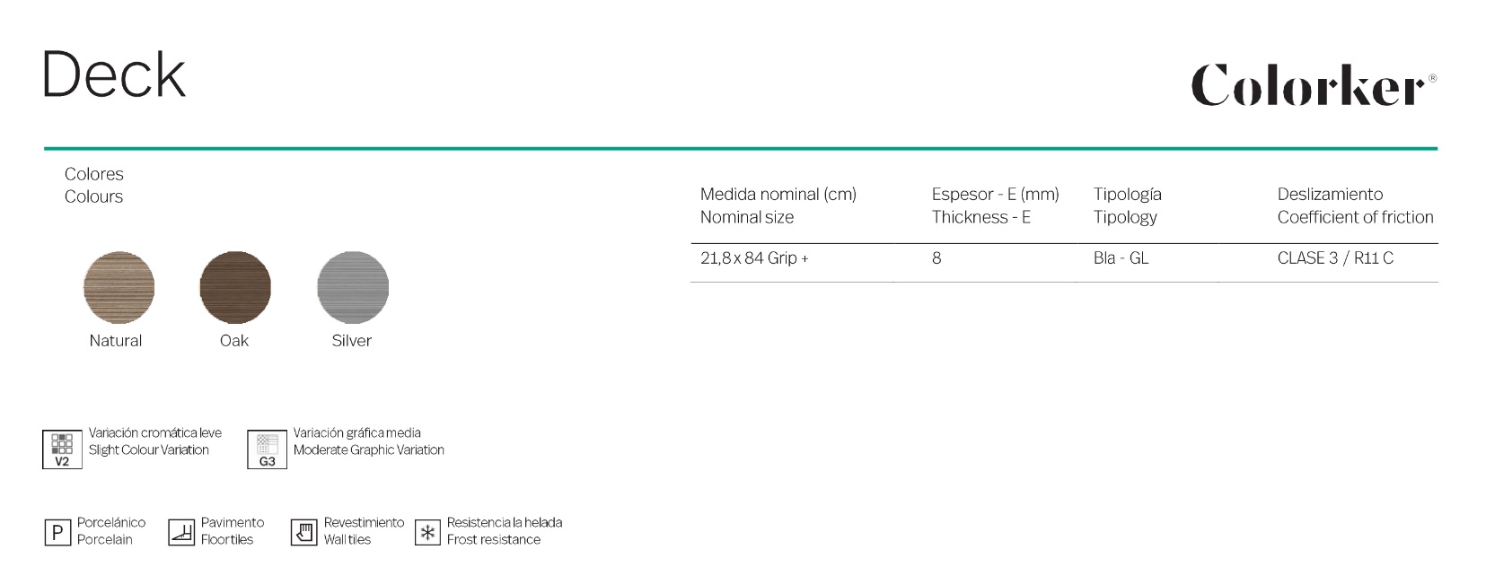 Colorker Deck Oak Grip 21,8x84 gres padlólap