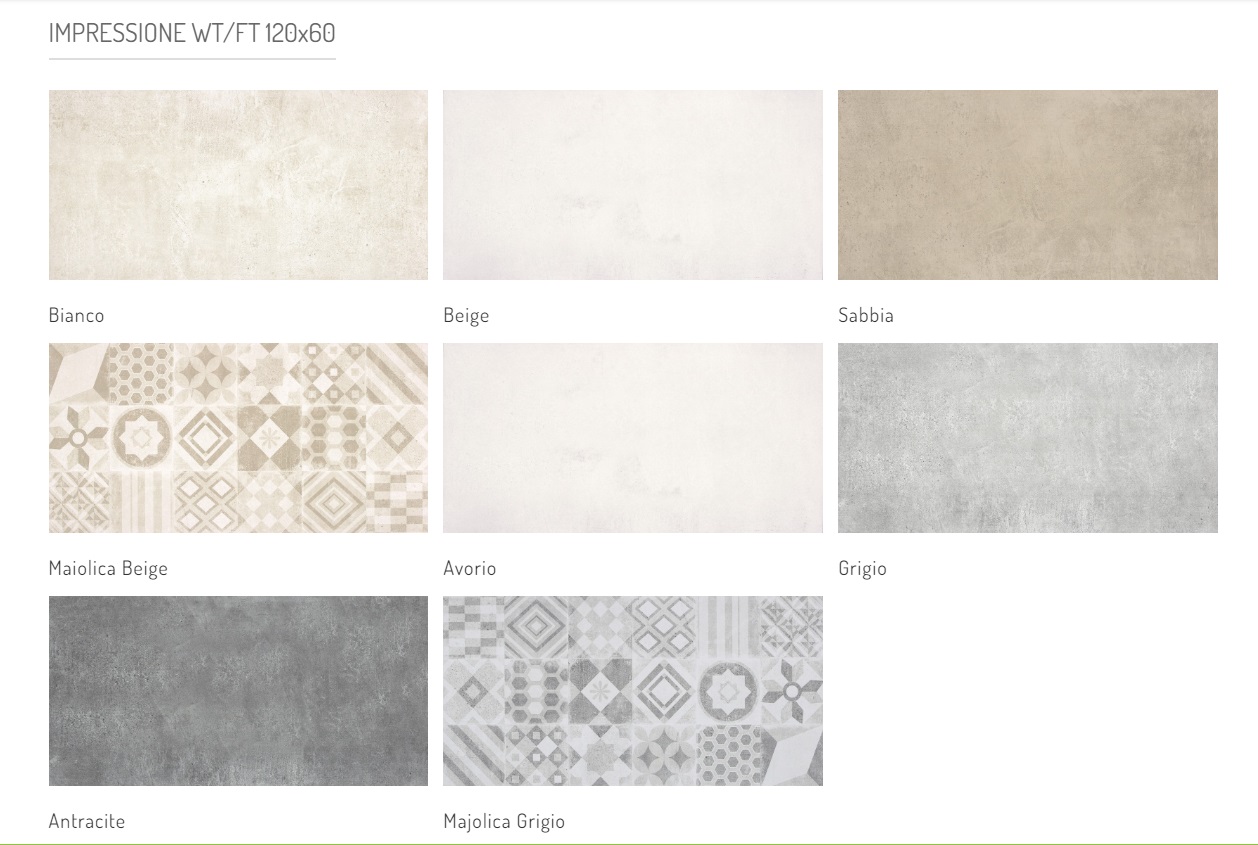 6 színben készül: Bianca, Beige, Avorio, Grigio, Sabbia, Antracite
